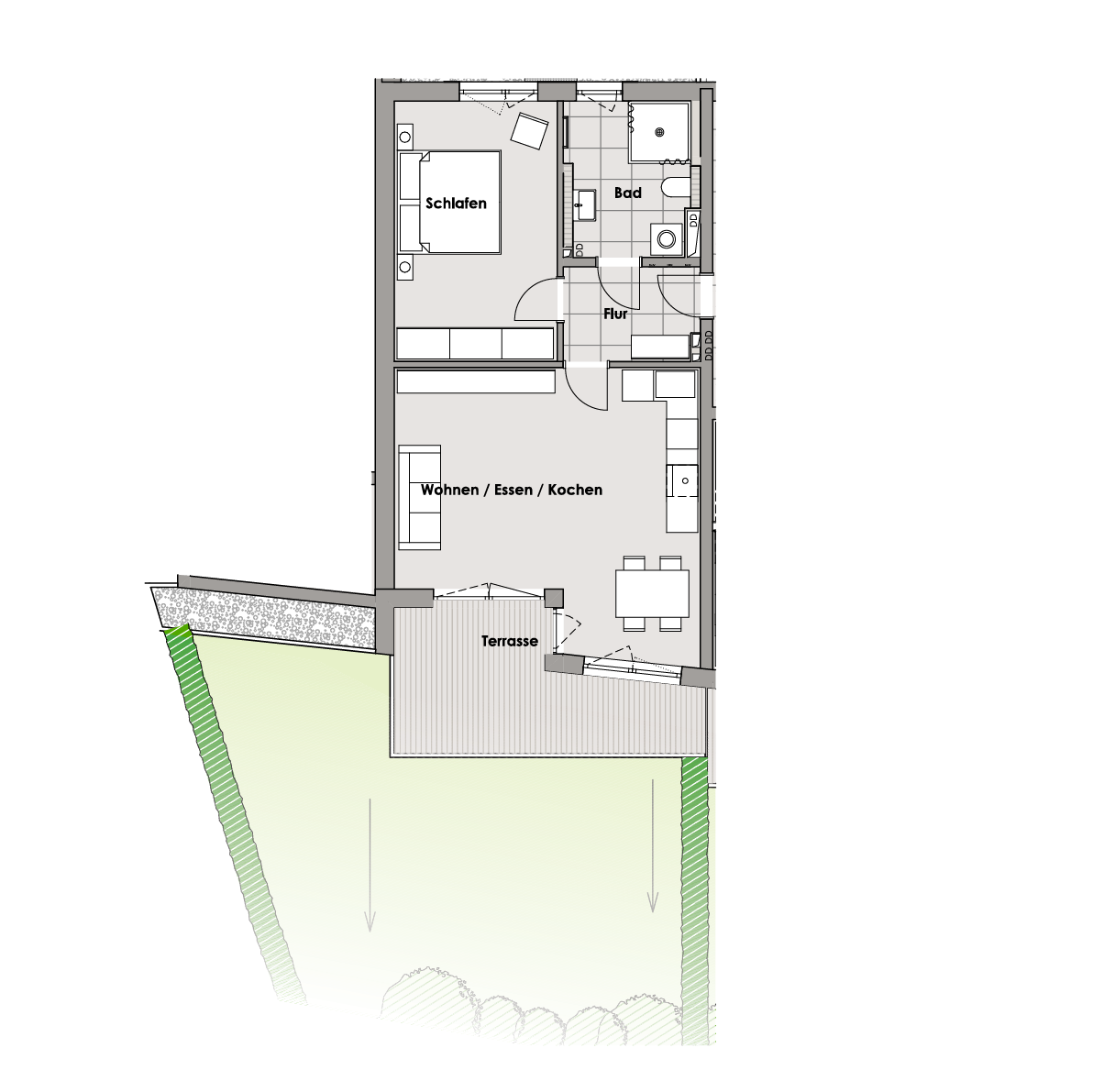 2 Zimmer-Wohnung mit Gartenteil