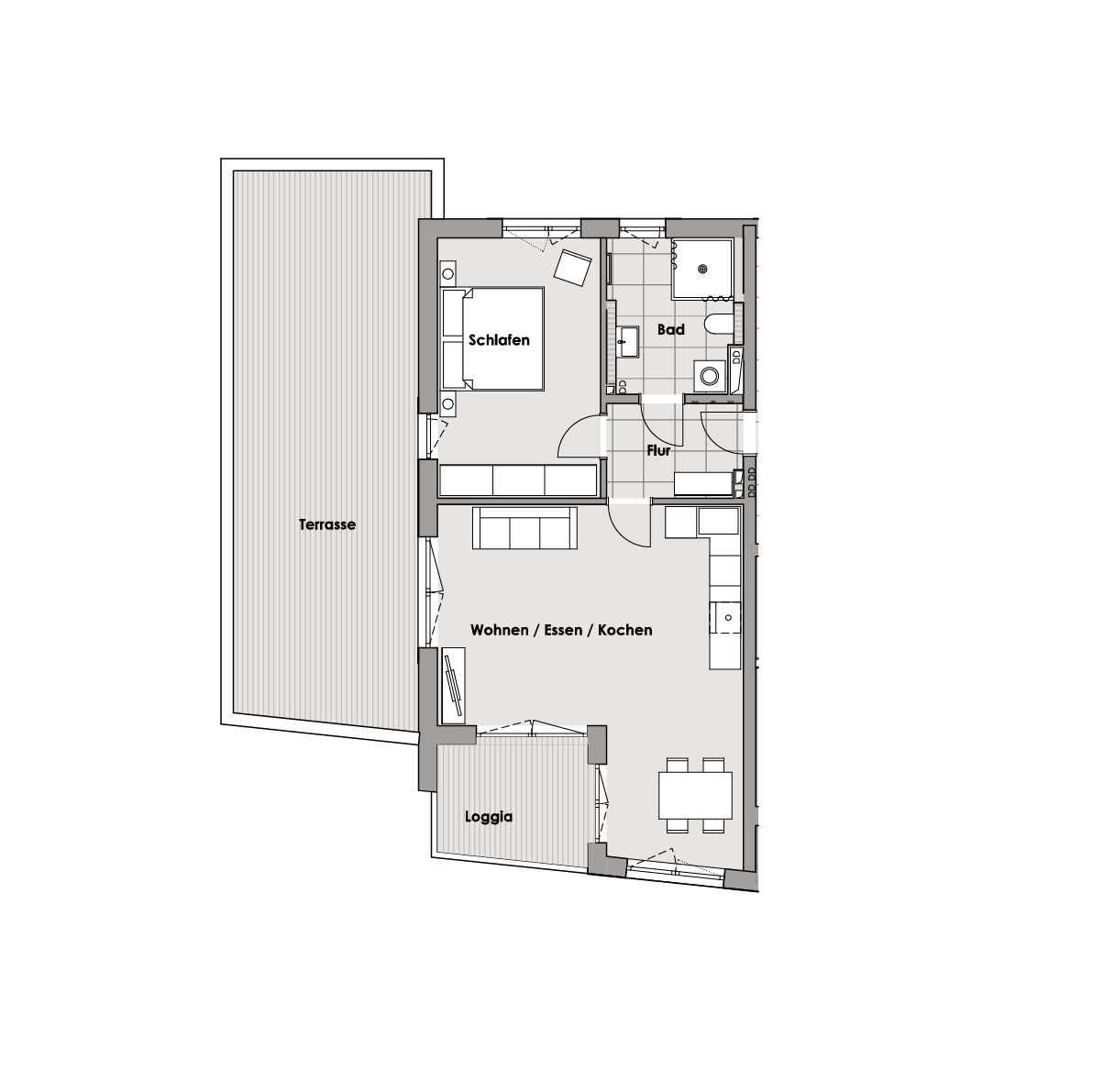2 Zimmer-Wohnung mit Loggia und Dachterrasse