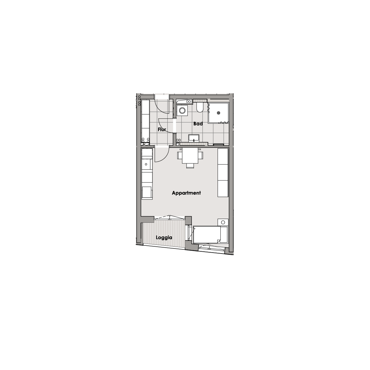 1 Zimmer-Wohnung mit Loggia