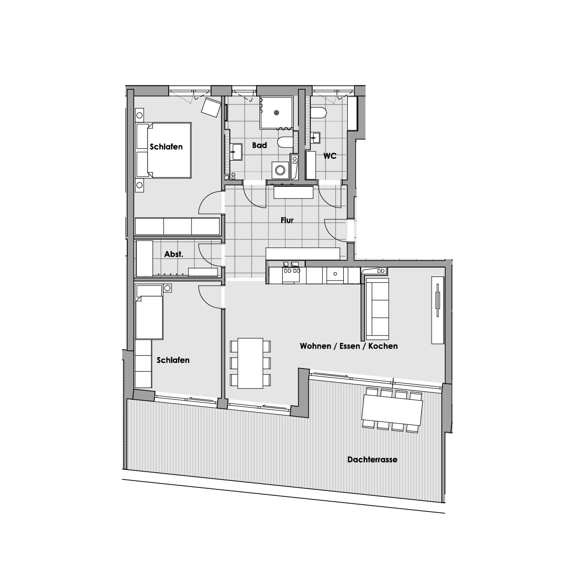 3 Zimmer-Wohnung mit Dachterrasse
